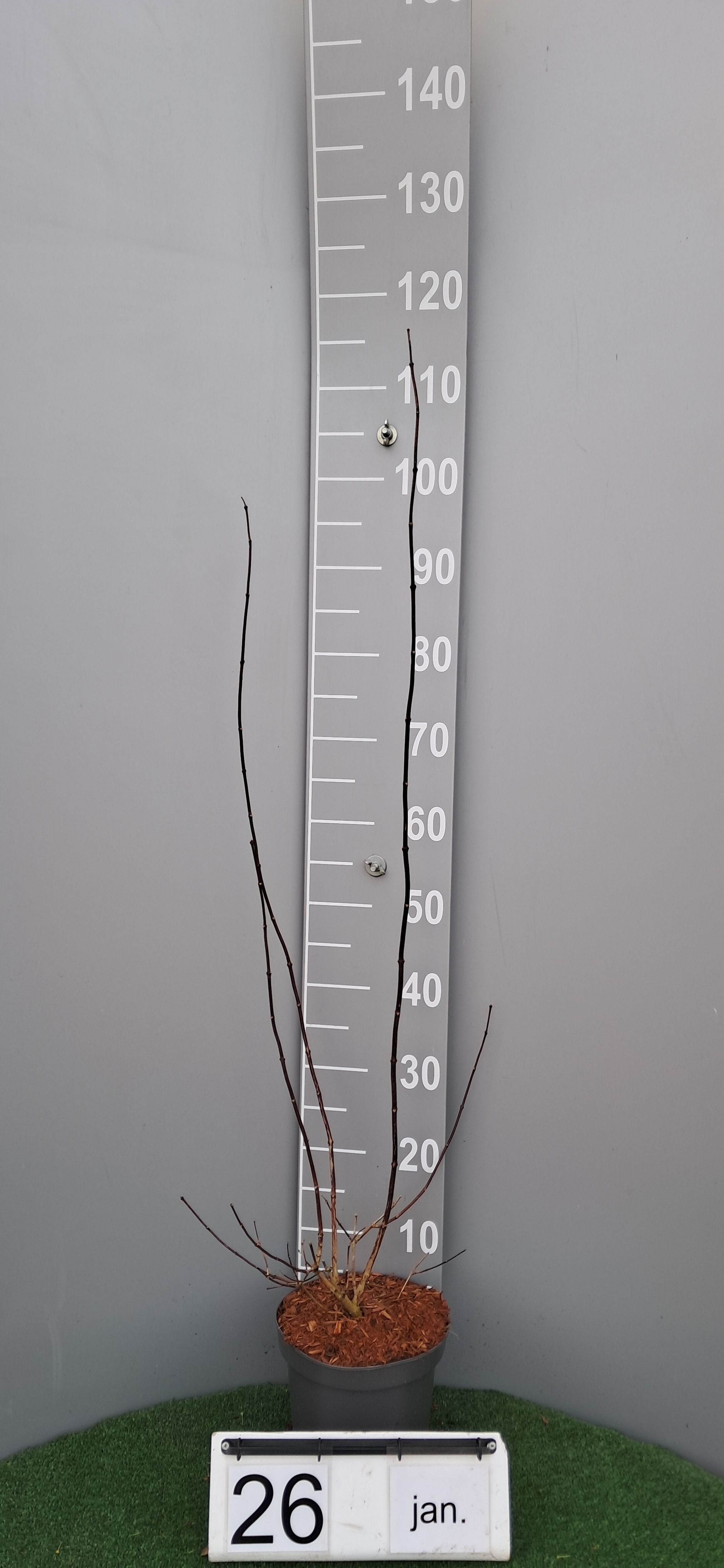Planten: De pot in een emmer water dompelen, daarna in de tuin uitplanten. Positie: volle zon, halfschaduw. Bloeiperiode: mei-juni. Bloemen: geurend. Hoogte: 2 m. Bladere : de jonge scheuten en bladeren zijn paars. Snoeien: na de bloei. Geschikt voor decoratie, niet voor consumptie.